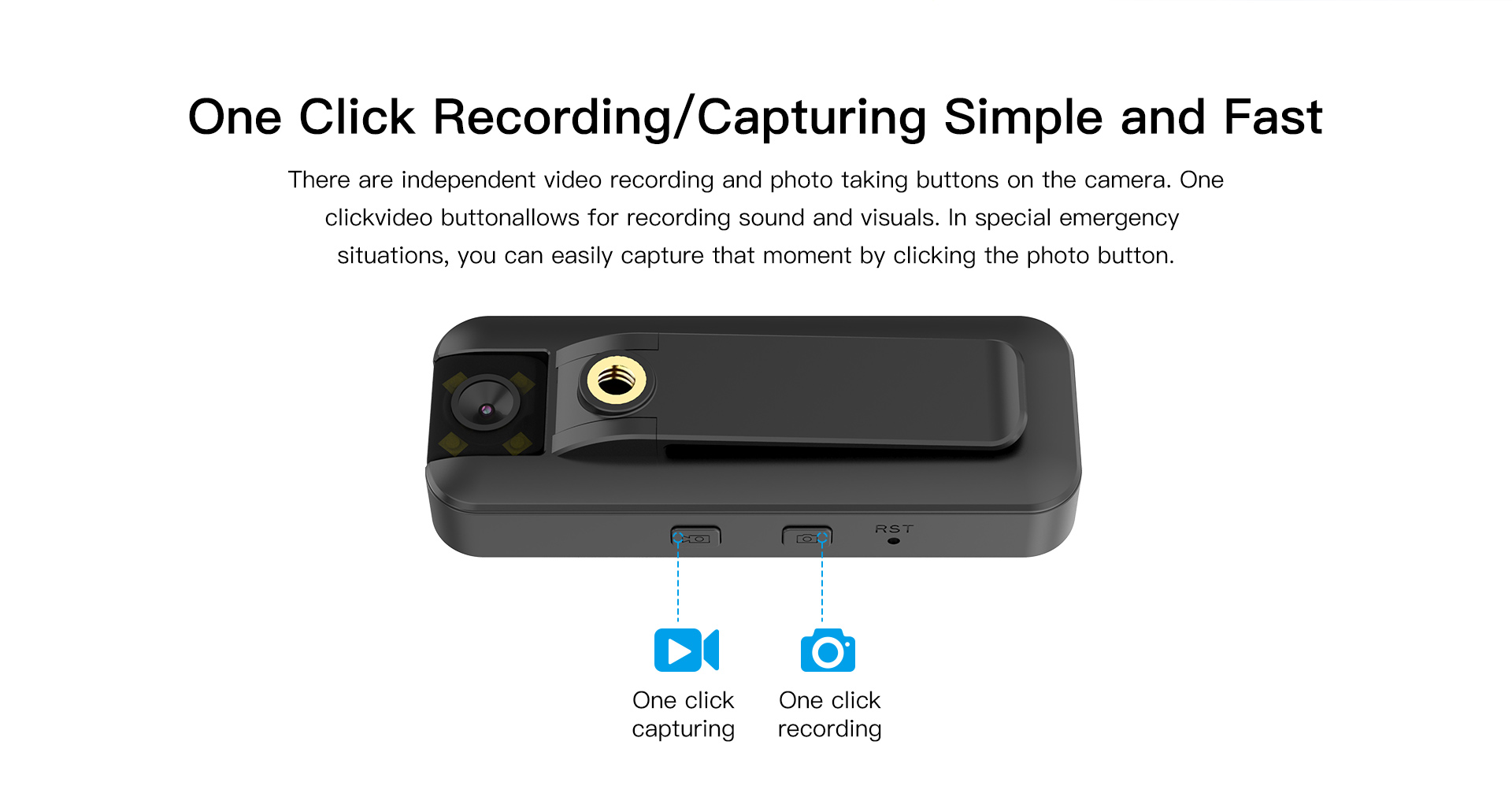 Bei der Bedienung der Kamera können Sie nichts falsch machen. Es gibt nur einen Ein-/Aus-Schalter, einen Recorder-/Übertragungs-Schalter und einen Reset-Knopf. Alle anderen Einstellungen treffen Sie in der App, die selbsterklärend ist.